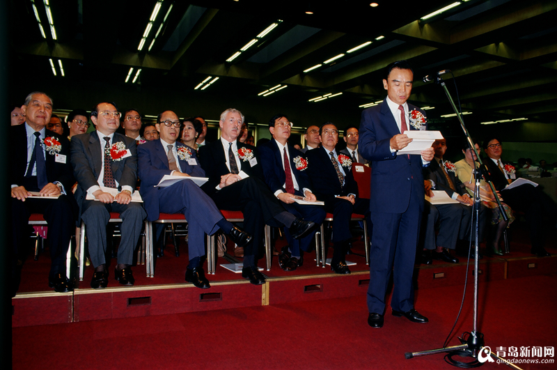 1993年7月15日,青岛啤酒股份有限公司的股票在香港联交所挂牌上市-时任中国证监会主席刘鸿儒在青啤上市挂牌仪式上发表讲话。