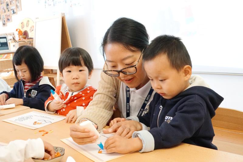 记者注意到,与传统幼儿园不同,在赫德幼儿园,每个蒙氏班级都会有一位中方班主任、一位外方班主任、两位助教老师。每位老师的工作各有侧重,细致、全方位的观察,能够最大程度确保每一个孩子的学习时间、生活需求都能被满足。不光老师有爱,同学之间的相处方式也不禁让记者点赞。蒙台梭利环境有别于其它教育方式的一个显著特点便是混龄教育。午饭时间,年龄稍大的孩子主动做起老师的帮手,为年龄更小的孩子盛饭打菜,打扫卫生。在班级这样一个小型的社区里,孩子们在潜移默化中学会了相处之道,大家相互帮助、相互协作,共同营造一个有爱的“家“。