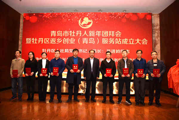 青岛新闻网1月14日讯(记者 王爽)为了进一步加大青岛市菏泽籍工商界人士返乡投资创业工作力度,实现返乡创业全国主要城市全覆盖,今日下午,青岛市牡丹人新年团拜会暨牡丹区返乡创业(青岛)服务站成立大会正式举行。本次会议聘任在青岛奋斗的菏泽籍人士作为站内工作人员,充分发挥桥梁纽带作用,助力青岛与菏泽资源互通,动员更多人返乡创业,支持家乡经济建设。