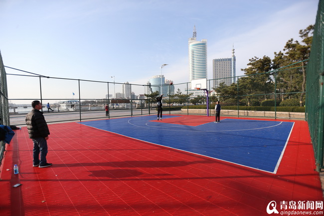 足球场旁边还有篮球场。场内,有两名少年正在练习投球。市民张安全介绍到,自己单位就在附近,每到周末,喜欢带着孩子过来玩球。他说:“海边空气好,每周来一次,孩子上初一了,平时学习紧张,活动活动放松一下。再说,打篮球还长个。这篮球场建得真是得民心。”