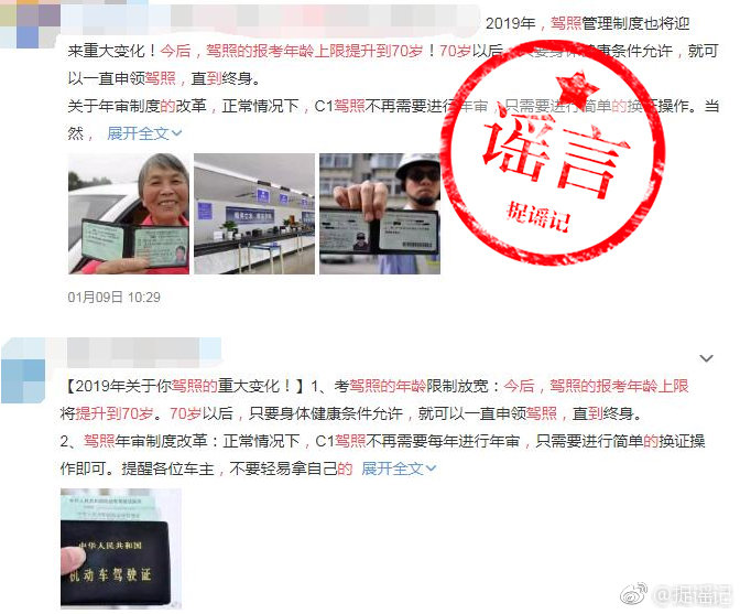 网上近日流传多篇网帖称,2019年起驾照申领年龄放宽到70岁。网帖还称,“70岁以后,只要身体健康条件允许,就可以一直申领驾照,直到终身。”媒体求证发现,《机动车驾驶证申领和使用规定》目前暂无修改,驾驶证报考年龄限制并未放宽到70周岁以上。
