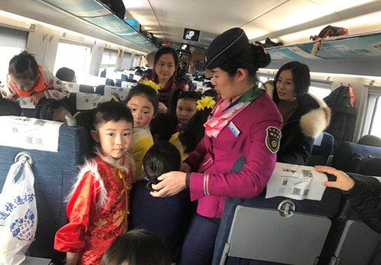 青岛新闻网1月30日讯(记者 张力伟)在新春佳节即将到来之际,D6077次的工作人员们迎来了一群喜气洋洋的“小天使”。