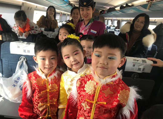 他们的活泼和精彩的表演让整节列车洋溢着满满的年味。