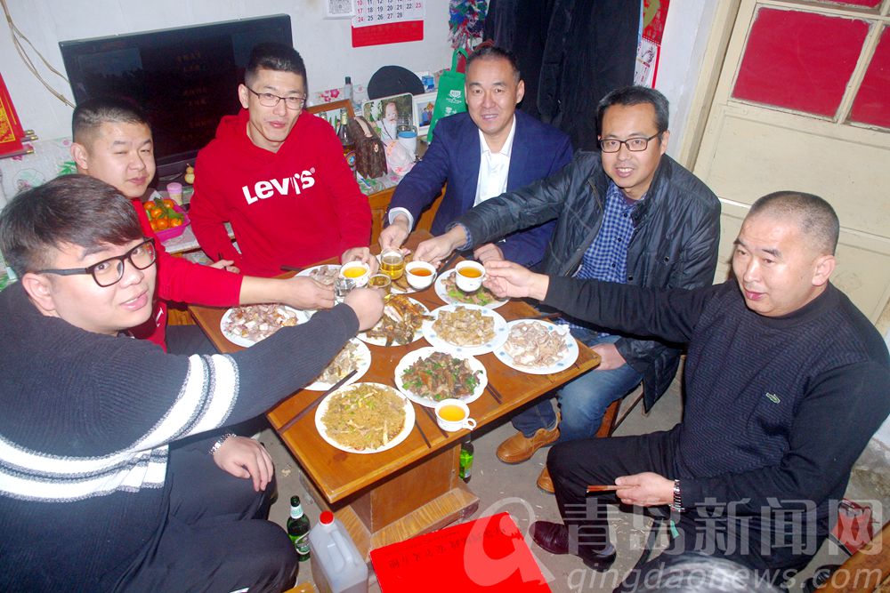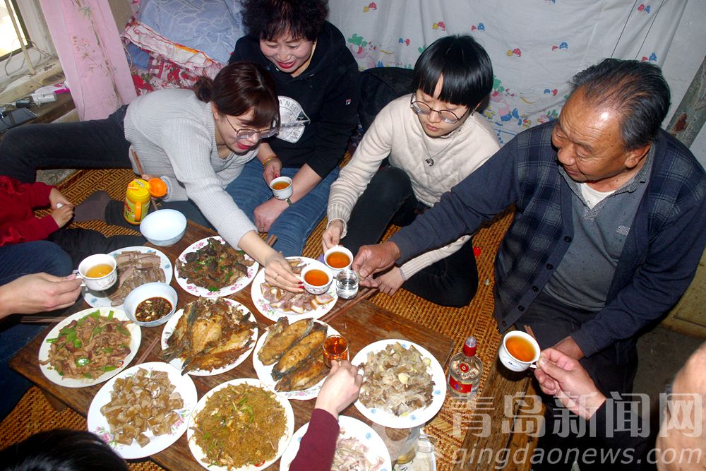 青岛新闻网2月8日讯(文/庞为 图/逄淑才)过年了,乡村里人们聚餐是啥样?在青岛周边的普通乡村,过年的饭菜和城里有很多一样的地方,也吃饺子,也有大鱼大肉。但细细品味,还是有很多不一样的地方:寒冷的冬天里,一家人围坐炕头喝酒吃饭,从心里往外温暖热乎;用了多少代的大铁锅煮出的饺子,带着更浓的年味儿和乡土气息;自家养的鸡下的蛋,吃着更香;老妈亲手熬制的猪皮冻,口感更地道,更让人放心……这过年啊,还是回乡村老家好,那里的亲情友情和乡愁的味道更浓些!