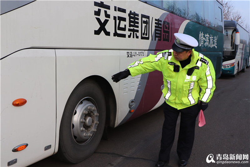 7时30分,10辆运载外来务工人员的大客车陆续驶进入青特集团公司院内,民警召集10名司机签定保证书,要求开车司机旅途中严格遵守道路交通安全法,不疲劳驾车、不争道抢行,确保乘客安全。民警严格执行客运车辆“八必查”首先清点了每辆车人数,检查了每名开车司机的资格,上网查询了每名司机的交通违法信息,车辆审验情况,检查了车辆灭火装置,安全敲打锤情况和车辆轮胎磨损状态,车辆卫星定位装置等。