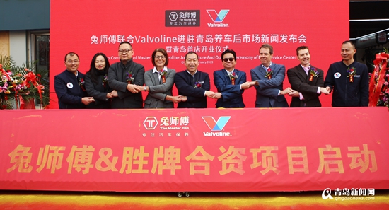 强强联合齐发力“当兔子有了世界上第一桶润滑油”2月22日,上午10点,兔师傅联合Valvoline进驻青岛新闻发布会暨青岛首店开业仪式隆重举行。伴随着掌声,兔师傅CEO、青岛兔师傅胜牌汽车服务有限公司董事长宋烈进与Valvoline全球快速换油业务副总裁Laura Carpenter等嘉宾一同倾倒金色流沙,“兔师傅与美国Valvoline合资项目正式启动,兔师傅和美国Valvoline合资共建的第一家社区店也正式开门营业!