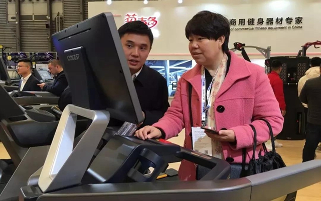 图为客户在体验我们的高端产品X21跑步机