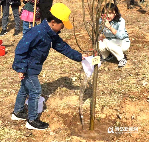 青岛新闻网3月10日讯(记者 朱颖)挖坑、填苗、浇水、培土……今天上午,基隆路小学2018级5班的32名小同学在老师和家长们的带领下来到世博园,小同学们和家长一起种下了带有标签和寄语的小树苗。小同学们在植树过程中,不仅体会到“节约”用纸的重要性,还表示要更加爱护环境,发扬互帮互助的集体意识。