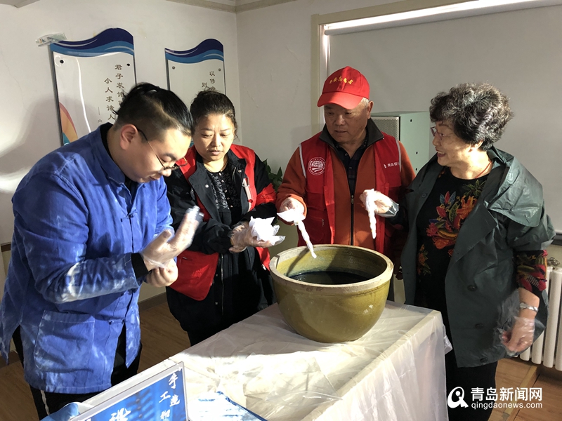 青岛原一艺术扎染工作室创始人孙珺琦,从扎染的历史、原理、在现代服装中的运用,以及草木染的原理、中外运用对比等方面,为现场居民进行了详细讲解,并现场指导居民制作扎染手帕。孙珺琦曾在中国扎染之乡大理周城村系统学习古法扎染,并先后向多位扎染专家学习,如今,他一直致力于在青岛宣传和推广这门传承了上千年的有着浓重历史文化和魅力的手艺。