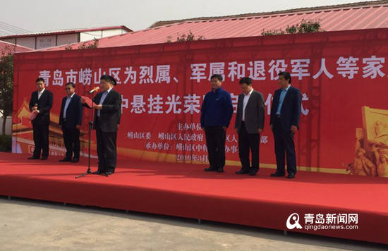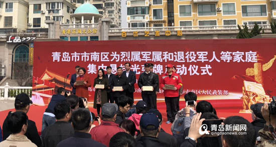 崂山区为烈属、军属和退役军人等家庭集中悬挂光荣牌启动仪式。