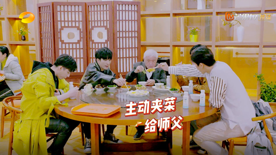 虽然已经是八十多岁的高龄,师父牛犇却依然保持着敬畏生活、敬畏工作的初心。与徒弟团回忆往事,告知徒弟团要热爱自己的事业,自己选的路要努力付出;而光盘行动、守时、每天五点起床等生活中的小细节也让徒弟团无不佩服。其实,生活中的师父牛犇有一颗老顽童的心,在看到徒弟们为“讨好”自己迟到买来喜爱的冰激凌时,瞬间就被“收买”,忘记了生气,还言称要与徒弟团成为“哥们”。师徒间的过招,层出不穷的金句,让节目传递正能量的同时,充满了轻松欢乐的气息。