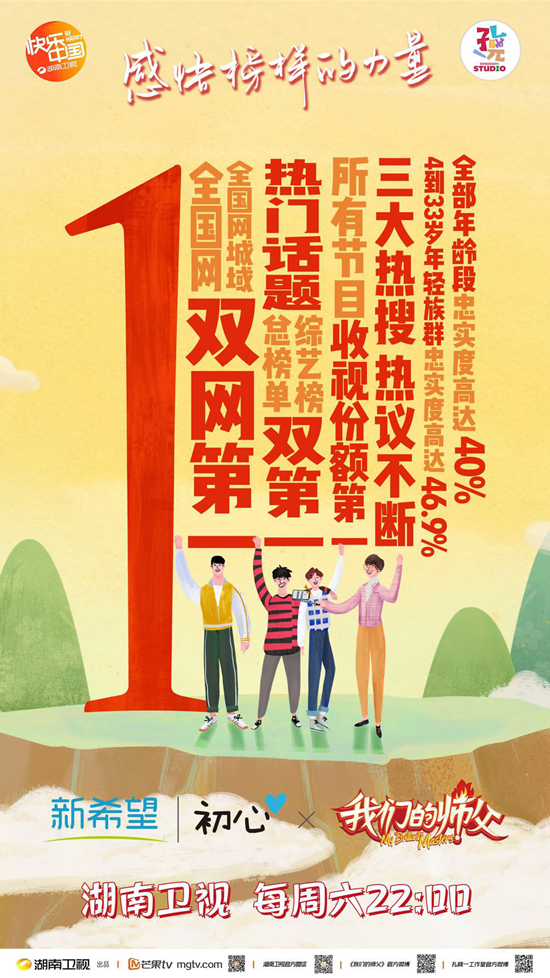 3月28日,由新希望乳业初心酸奶赞助播出的湖南卫视纪实性文化品格传承节目《我们的师父》于昨晚(3月30日)22:00新鲜首播。带着不同的人生困惑而来,“GSG”徒弟团首次集结,敲开师父牛犇的家门后,状况不断,上演了一出爆笑连连的“拜师记”。暖心大师兄于晓光、“鬼马精灵”大张伟、懵懂少年刘宇宁和小师弟董思成的首次亮相,也收获满满好评。首期节目精良的制作和精彩内容迅速赢得观众青睐,口碑炸裂,热度爆表。据央视索福瑞提供的数据显示,《我们的师父》在全国网、全国网城域上星综合组中位列同时段第一,4~23岁年轻观众忠实度更高达46.9%,现象级的收视表现引发话题冲击波。播出当晚,#我们的师父#、#牛犇老师住的老年公寓#、#牛犇要送大张伟红裤衩#等话题先后登上微博热搜榜,#我们的师父#主话题登顶话题榜首位,持续引发观众热议,首播大获成功。得益于此,与寓教于人、传递正能量节目调性高度契合的初心酸奶也收获了极高的关注度。