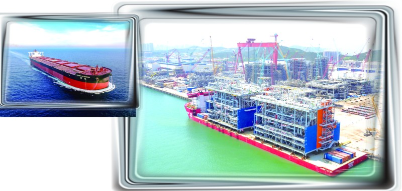 在胶州湾南口的西海岸,海西湾国家船舶海工装备产业示范基地中,一家家企业正在紧锣密鼓地生产、制造。围绕海洋强国的战略目标,这里已形成以造船、海工装备制造为龙头、船舶配套和技术研发同步发展的船舶产业集群。走进海洋石油工程(青岛)有限公司,放眼望去,600吨、800吨龙门吊巍峨耸立,近百台履带吊、汽车吊拔杆林立,先进的基础设施,一流的工艺装备,绘就了船舶海工产业的发展宏图。
