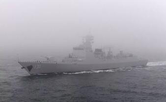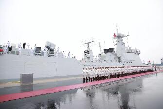 4月23日,庆祝中国人民解放军海军成立70周年海上阅兵活动在青岛附近海空域举行。这是“太原”号导弹驱逐舰接受检阅。新华社记者 李紫恒 摄