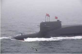 4月23日,庆祝中国人民解放军海军成立70周年海上阅兵活动在青岛附近海空域举行。这是中国某新型核潜艇接受检阅。新华社记者 李刚 摄