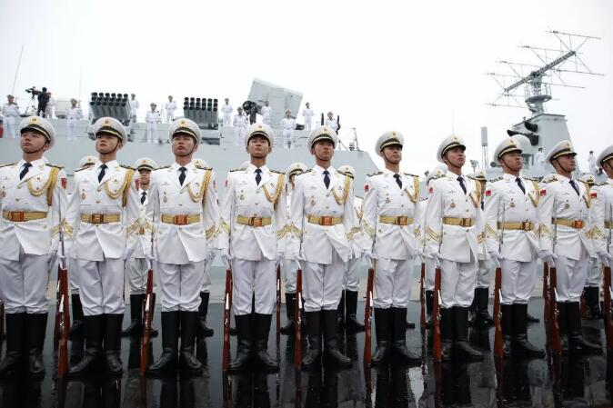 4月23日,庆祝人民海军成立70周年海上阅兵活动在青岛举行。这是中国人民解放军海军仪仗队列队。新华社记者 李刚 摄