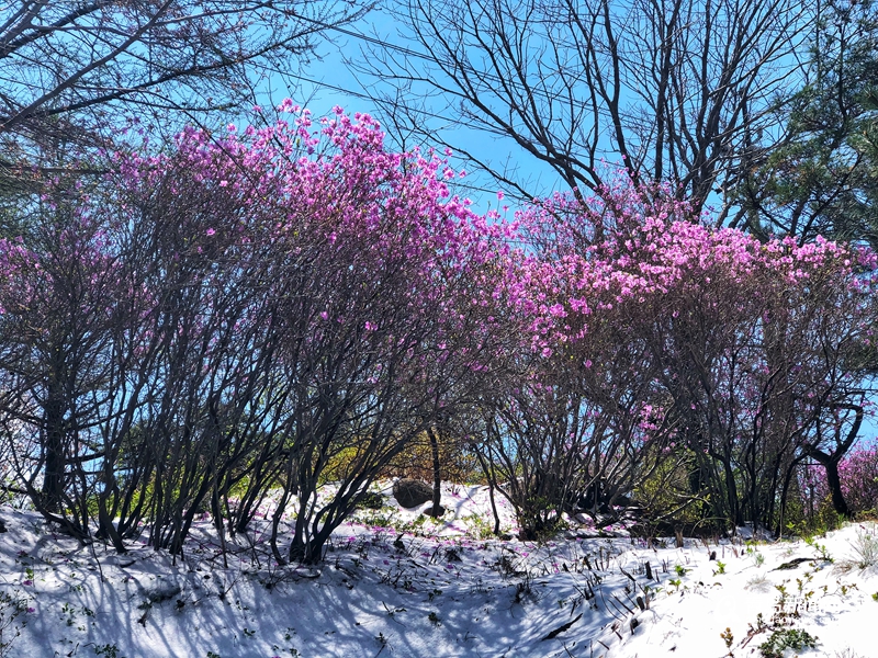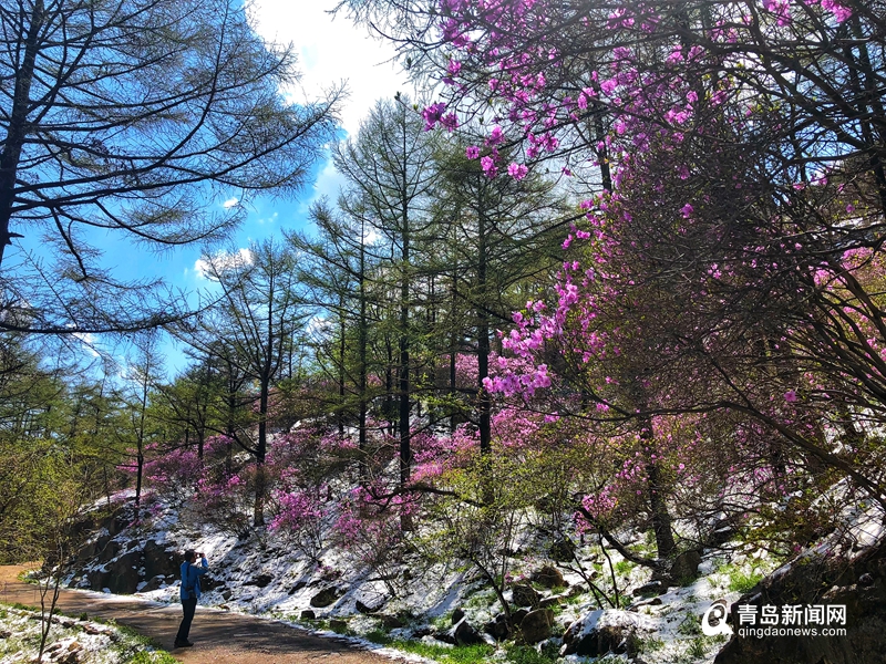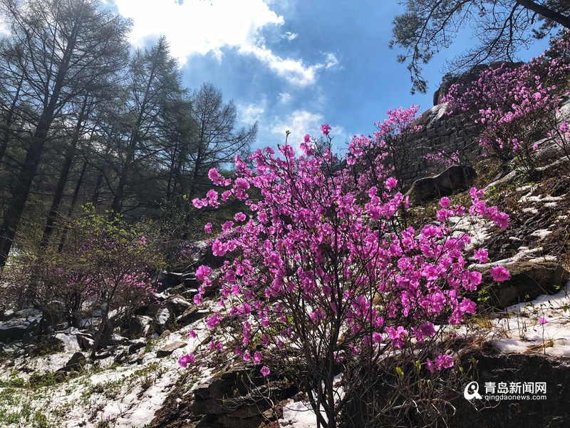 青岛新闻网4月26日讯(记者 王爽 通讯员 刘璐)崂山巨峰四月飘雪,整片山林银装素裹,仿佛时间倒流。在这飘雪的春天里,杜鹃花也迎来了盛花期。杜鹃花又名映山红,被誉为“花中西施”,色彩鲜艳,娇丽动人,花深红色或淡紫色红色。