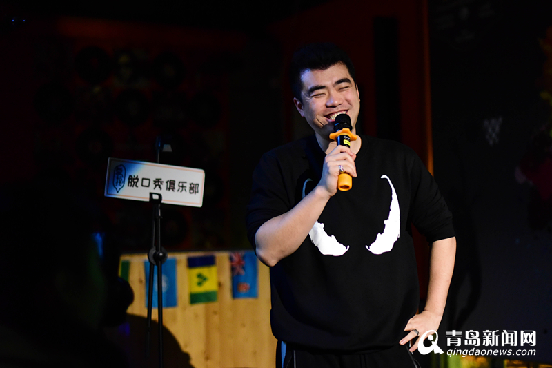 照片上的人是何天奇,青岛叁拾捌脱口秀俱乐部的创始人。