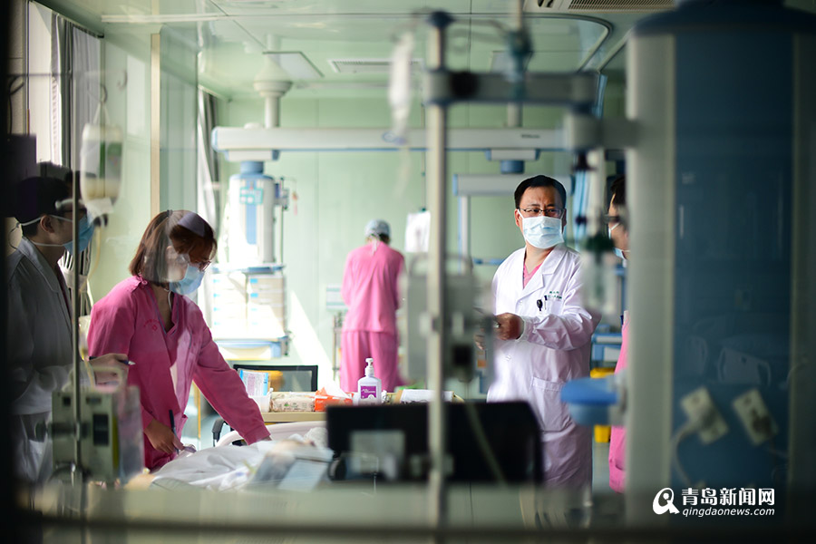 青岛市第三人民医院重症监护室内,董维浩正在进行例行巡查。