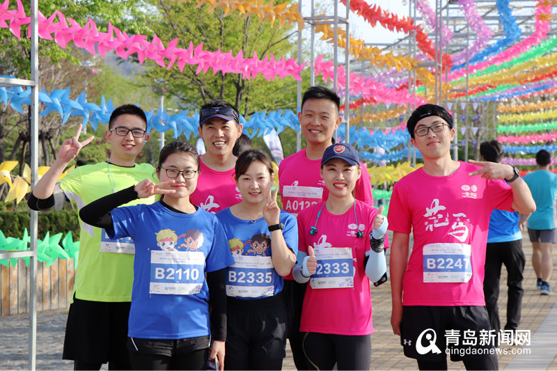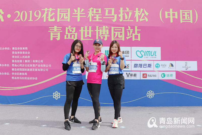 刚刚参加完青岛花园半马的卢晓忱(右)与跑友合照。