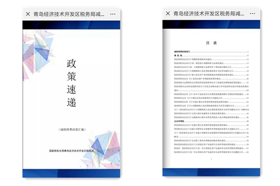 青岛新闻网5月9日讯 为方便纳税人学习、理解和享受国务院近年来下发的优惠政策,推动减税降费政策措施落地生根,青岛经济技术开发区税务局组织相关部门精心编写了《青岛经济技术开发区税务局减税降费政策汇编》,受到了纳税人的一致好评。