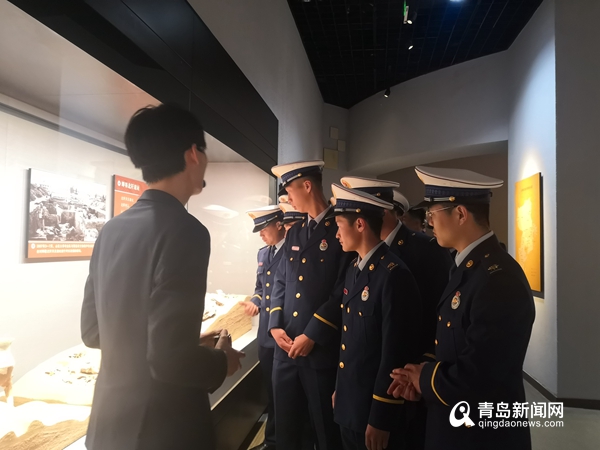 青岛市消防支队队员参观青博。