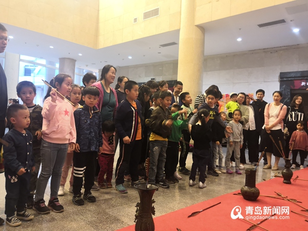 博物馆日当天,市博物馆还特别延长夜间开放时间,迎接一群“最美逆行者”——消防员和他们的家属。“夜色青博”活动中,市博物馆工作人员为青岛市消防支队的队员及其家属提供了专业的参观导赏,同时邀请他们体验了传统年画体验制作、“古代趣味运动会”中的投壶、舞龙等互动项目,当晚活动持续到8点多。