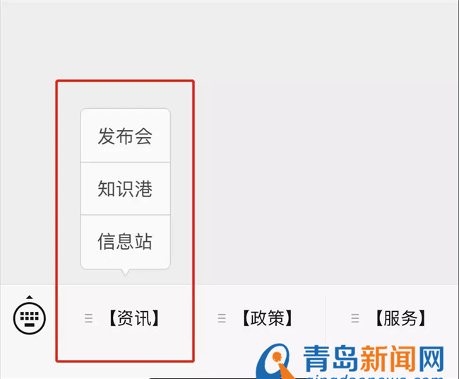 资讯板块细分为“发布会”、“知识港”和“信息站”三部分内容。其中,发布会版块将专门为大家分享国台办新闻发布会的最新消息,分享相关发言人就近期两岸热点问题回答的记者提问,包括中央广播电视总台国广、新华社、中央广播电视总台央广、中新社、人民政协报两岸经合周刊等记者的提问。知识港可以了解台港澳地区的有关知识,例如:“九二共识”等。通过信息站栏目,大家可以了解到青岛市台港澳办的工作信息,以及青岛与台港澳地区的交流活动情况。例如,省委常委、市委书记王清宪与台湾同胞的会见;台湾交流团来青岛参访等。
