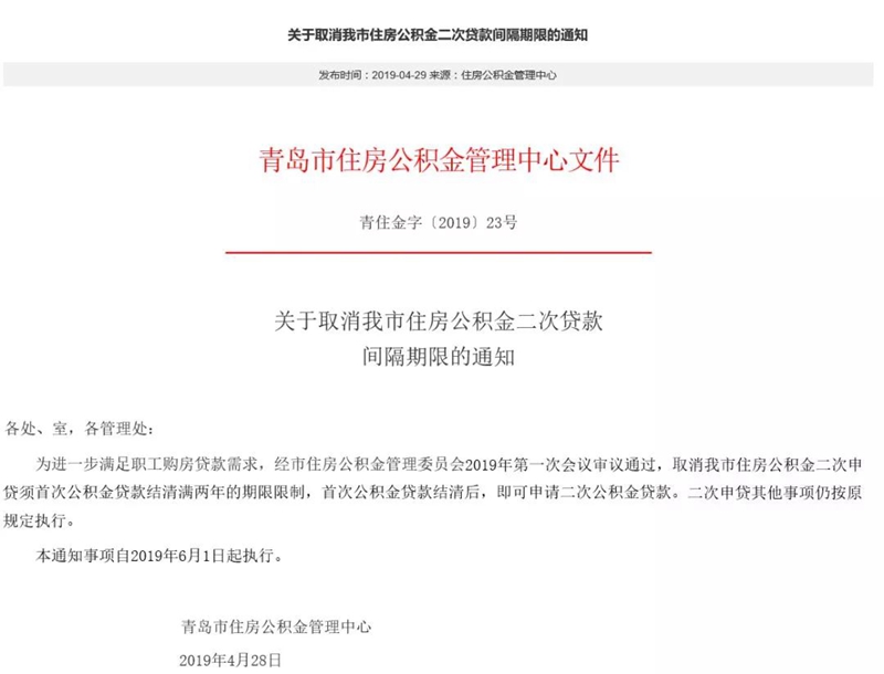 @青岛人 今天起公积金贷款取消二次申贷间隔期限