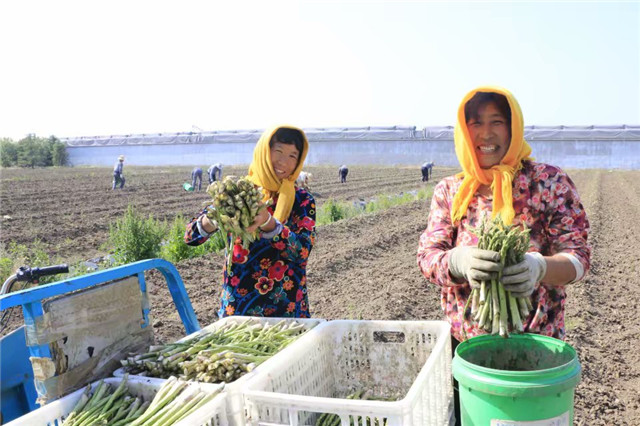 青岛新闻网6月4日讯(通讯员 孙金华)“今年芦笋价格不错,能卖到11元至13元一公斤,一亩地一年能产近万元,每天都有20多人在这里采收,每天的收获量在500斤左右。”在移风店镇北辛庄村李信波的芦笋种植基地里,工人们正在大田里割芦笋,李信波看着满眼绿油油的芦笋和忙碌的采收工人,心里乐开了花。