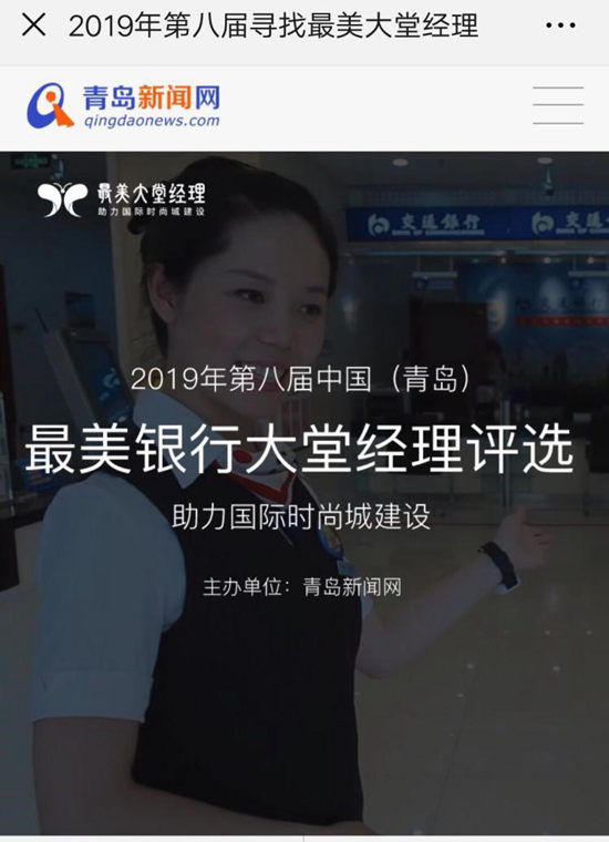 活动以银行一线网点大堂经理为对象,以评选的形式展示岛城银行从业人员的专业素养与服务水平,与百万网友一起,寻找时尚青岛的“银行之美”,为加快建设开放、现代、活力、时尚的国际大都市贡献金融力量。