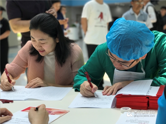 据现场了解,青医附院肝移植外科医生王新和手术室护士朱文燕都填写了申请表,而且他们是一对夫妻。从早上6:00多,王新就开始准备一台肝移植手术,一直忙碌到10点多,他和妻子“抽空”来到一楼,填表成为器官捐献志愿者。