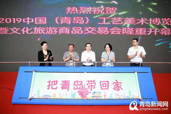 今年是青岛市文旅融合的开局之年。青岛市委常委、副市长王家新在博览会开幕式上致欢迎辞时指出,青岛秉承“以文促旅,以旅彰文,和合共生”的理念,汇聚全国工艺美术大师和青岛文化旅游商品的精品力作,创新性地将工艺美术与文化旅游商品结合,就是要让传统与现代碰撞、文化与时尚交融。