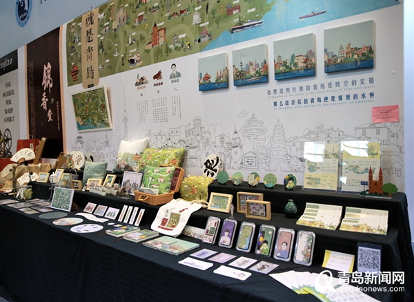 展会上,青岛理工大学琴岛学院毕业生李彦儒设计的“JIU青岛”系列文创作品。