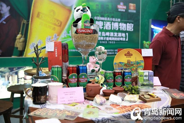 青岛啤酒博物馆展台,酒瓶型充电宝、迷你橡木桶摆件等文创抓住了市民眼球。