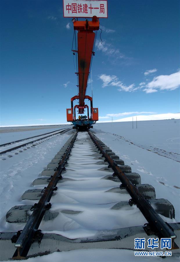 青藏铁路在铺轨建设中(2004年12月5日摄)。新华社记者 觉果 摄