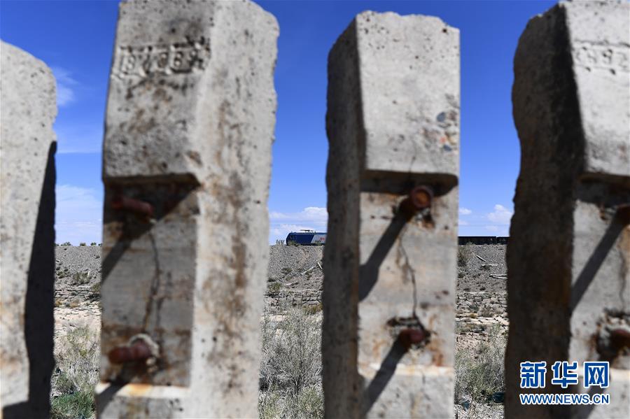 一列火车行驶在青海省海西蒙古族藏族自治州德令哈市境内的青藏铁路线上(2018年6月28日摄)。新华社记者 张宏祥 摄