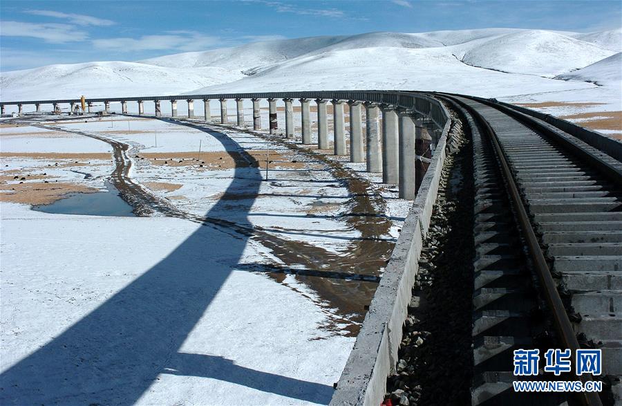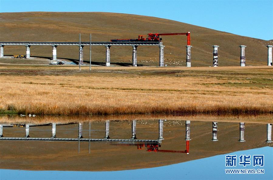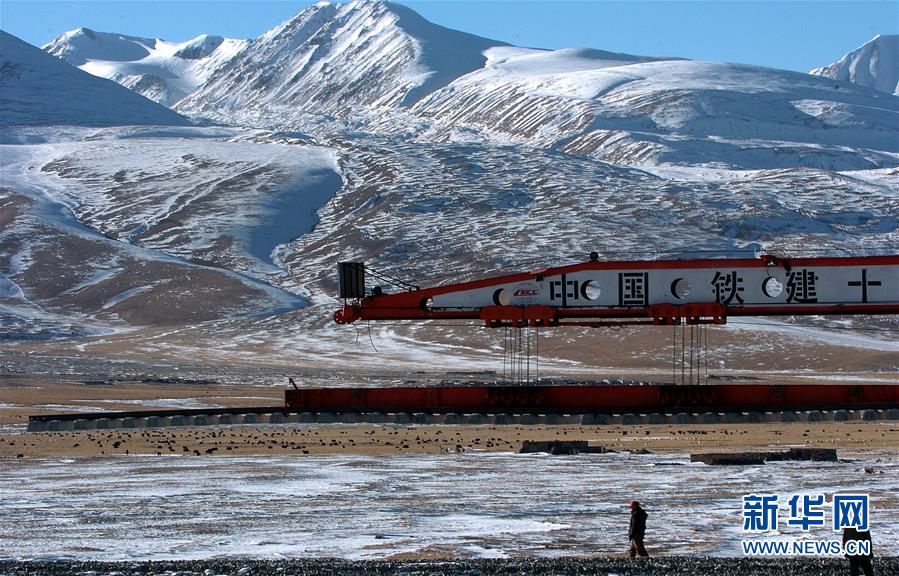 青藏铁路在架桥施工中(2004年资料照片)。新华社记者 觉果 摄