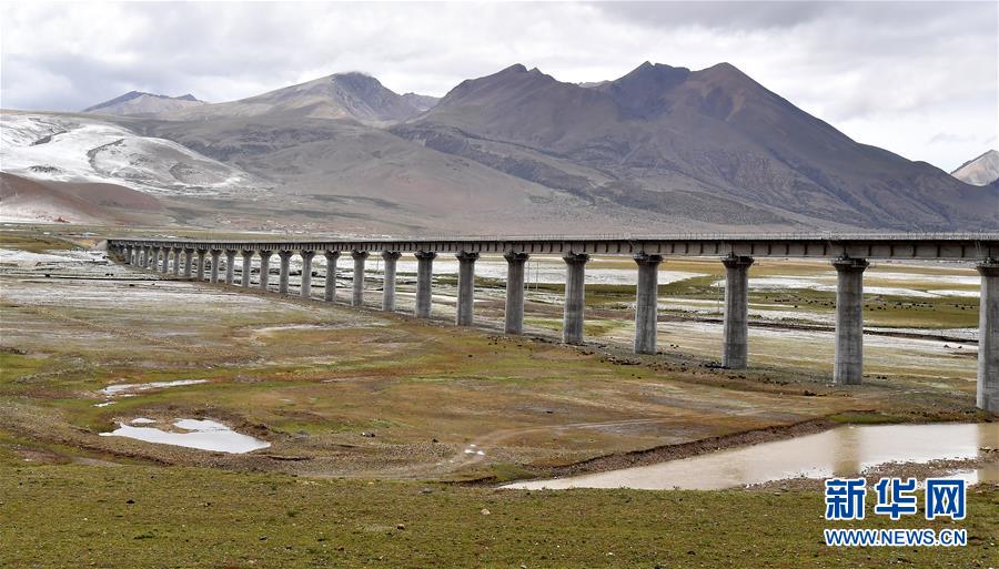 这是穿过一片湿地的青藏铁路(6月10日摄)。新华社记者 觉果 摄