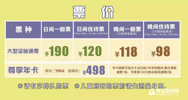 入场门票免费,设备体验通票190元,夜间118元。