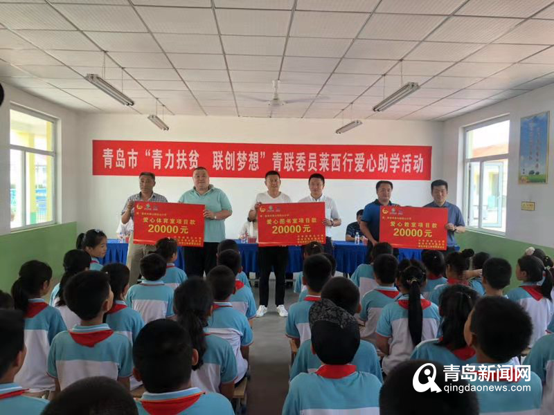 随后,委员们来到莱西市姜山镇前山小学开展了“青力扶贫 联创梦想”爱心助学活动。筹集资金6万元为姜山镇前山小学捐建了爱心图书室、爱心阅览室和爱心体育室,改善了学校的办学条件。委员们还为同学们带来了笔记本、U盘、公仔、鼠标垫等小礼物,现场认领了同学申报的50个微心愿,受到师生们的热烈欢迎。