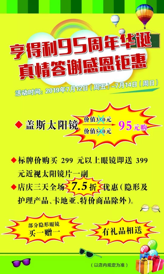 为了答谢新老顾客,青岛亨得利在2019年7月12日~14日,举办九十五周年店庆活动,在店庆活动的三天里,为广大消费者提供力度空前的优惠活动!