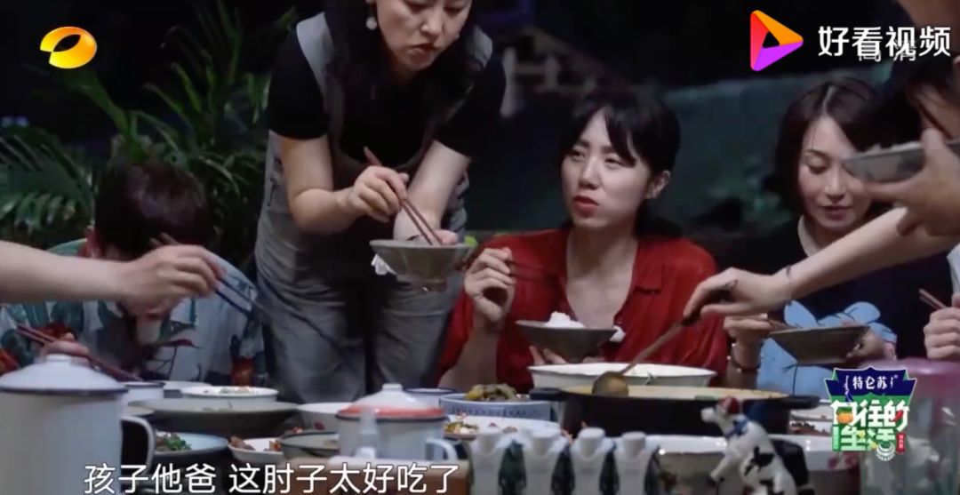 黄磊做饭被油烟熏得吃不下东西,大家都在热火朝天地吃吃喝喝没有注意,只有孙莉走过来,担心地说:以后别做饭了,休息一下。