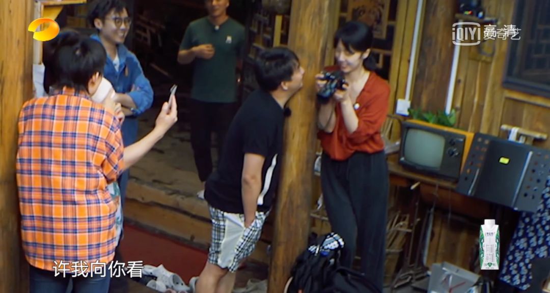 被黄磊撞破她在偷偷排练舞蹈,她整个人抱住黄磊让他离开。
