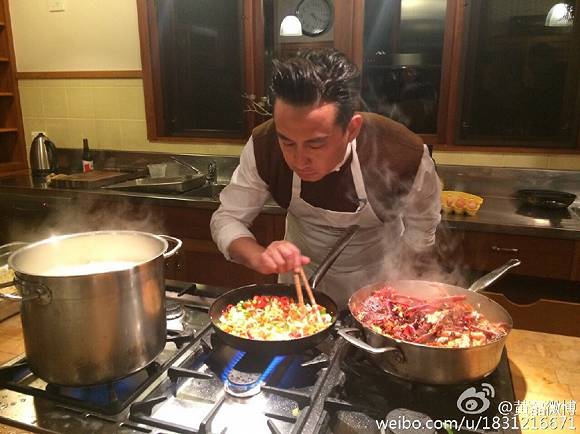 黄磊孙莉闲暇时,叫上三五好友,由黄磊掌勺做一大桌子菜,一起在家中聚会。