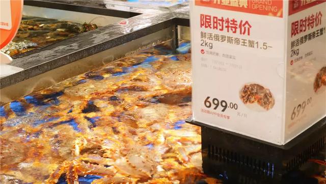 海鲜现捞现做现吃在是盒马的特色之一,水柜上只要悬挂有可现场烹饪字样的海鲜都能在店里进行加工品尝。