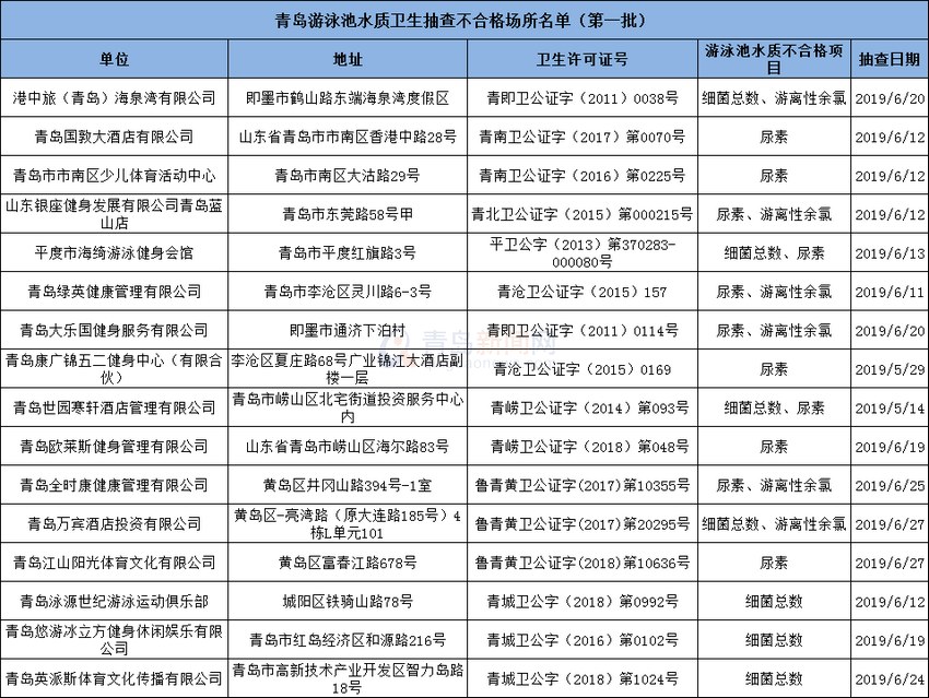 青岛16家游泳池水质卫生抽查不合格被国家卫健委综合监督局公示。