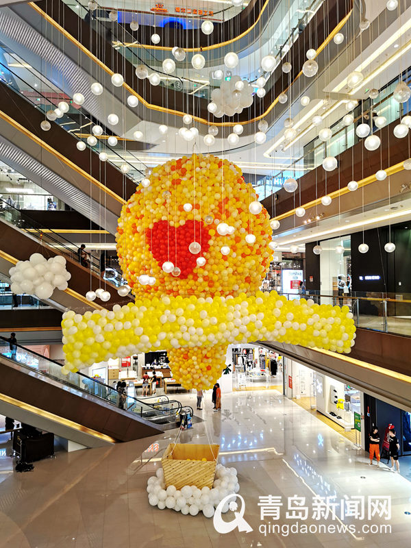 凯德mall用气球搭建了一个3层楼高的热气球美陈,配合云朵和球形吊灯挂饰,制造出梦幻之感。