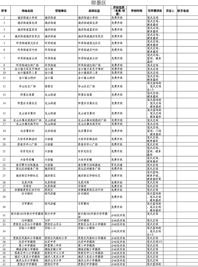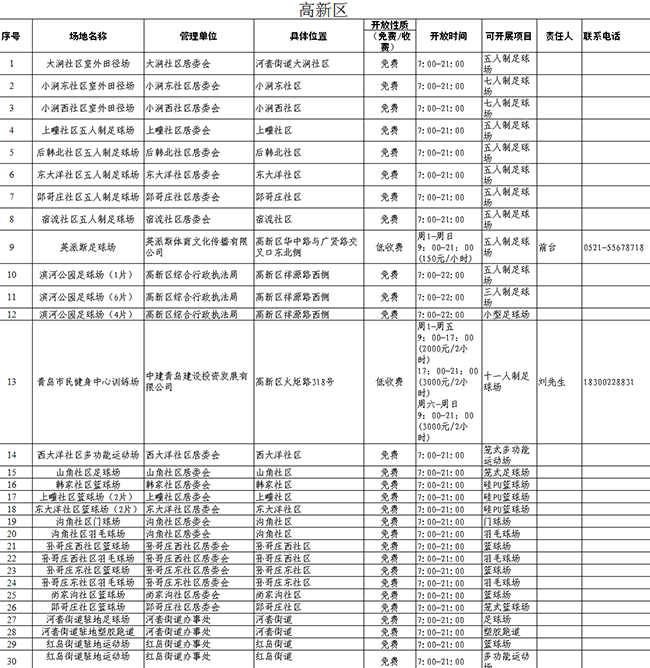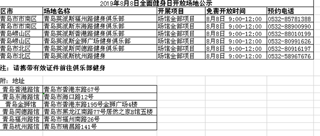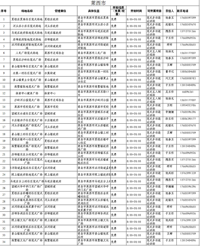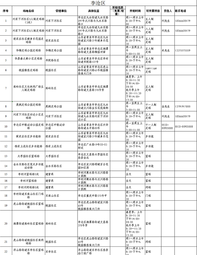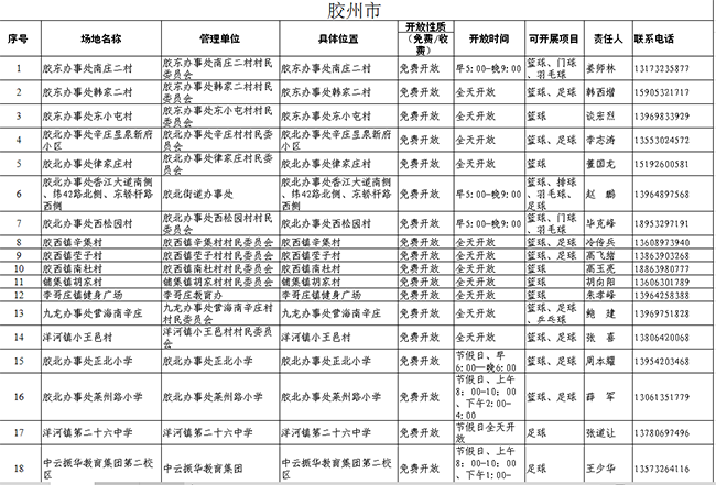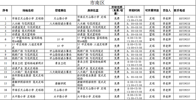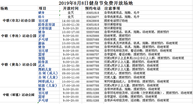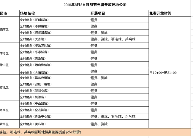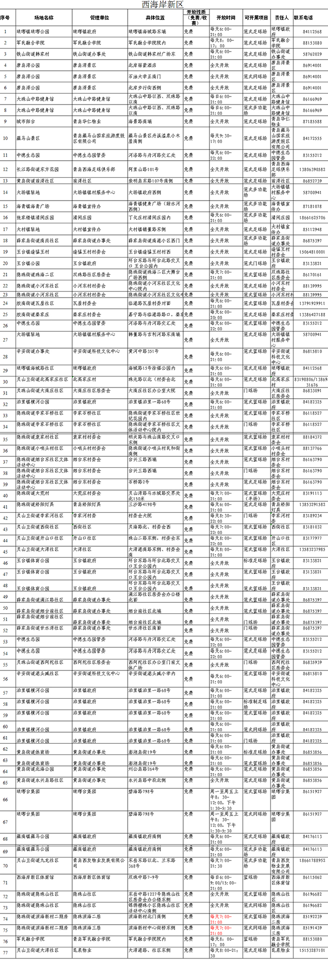 除了“全民健身日”的相关活动,平时,青岛市也免费开放了近500处公益性健身场地,供市民参与健身运动。小编将公益性做成表格,欢迎大家按图索骥,开展体育运动!