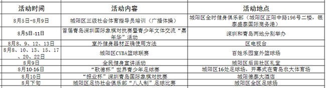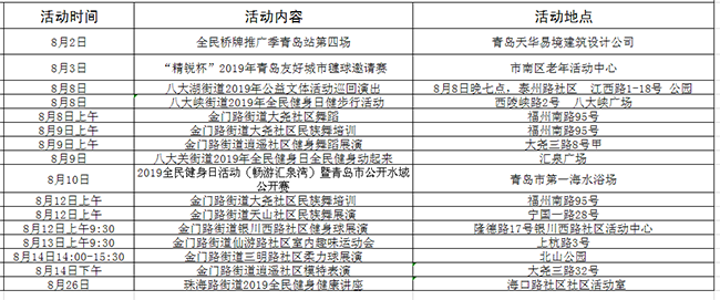 除了免费场地开放外,热情的8月碰撞时尚的青岛,近百项体育赛事、活动覆盖了整个青岛的夏季,一场体育盛宴等待你来品尝。